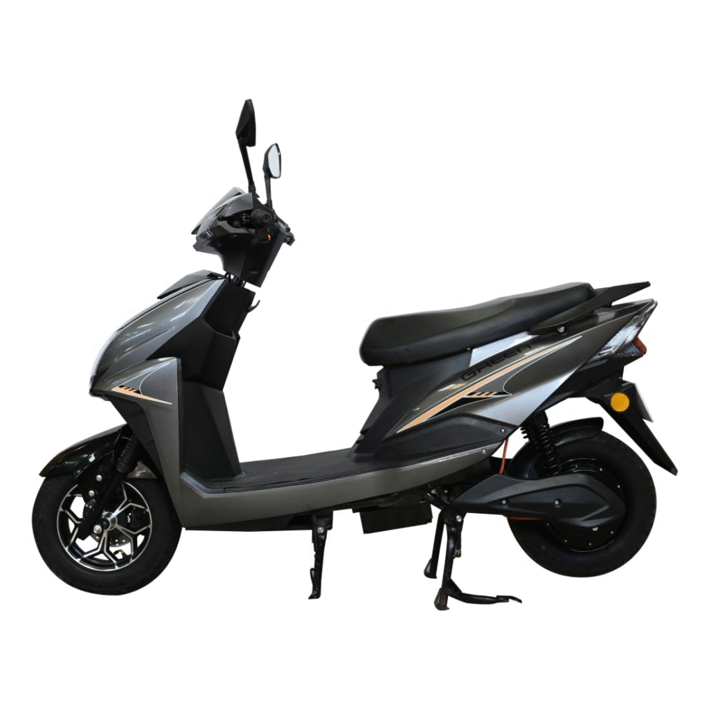 3. Green Invicta Low Speed Electric Scooter Non RTO 60KM Range Grey with Portable Charger