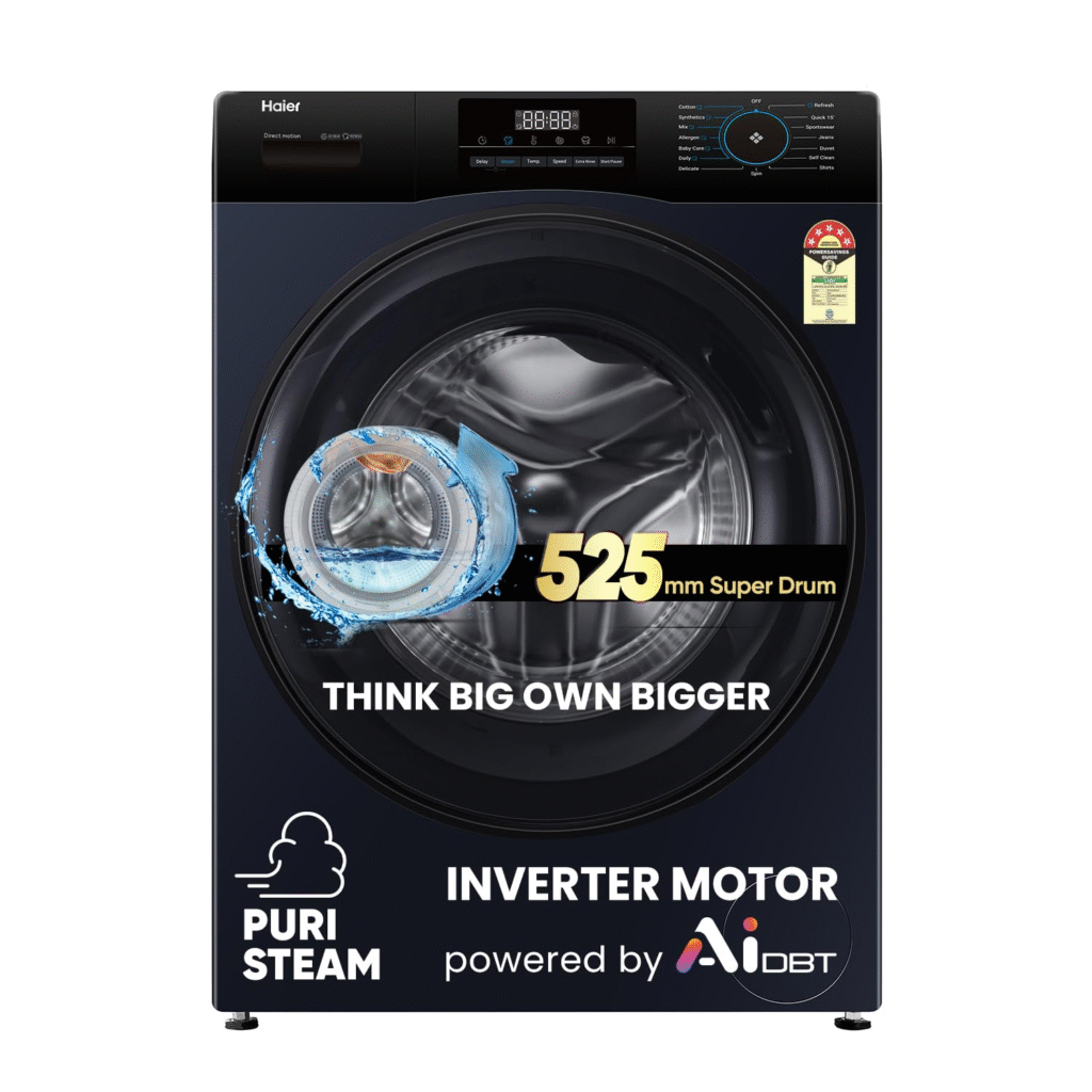 Presenting the Haier Front Load Washing Machine with the industry’s biggest drum and 8 kg capacity for homes! This fully automatic washing machine, powered by an inverter motor, offers greater wash quality, ease of use and both washing and drying options. Suitable for large-sized families, this front-load washer comes with 5-star energy efficiency and a 1200 RPM higher spin speed to help in faster washing and drying with 40 minutes per cycle for an average load. It’s 15+ wash programmes take care of every type of fabric, and the fully stainless steel drum is built to bring convenience and durability; this washer is durable to use.