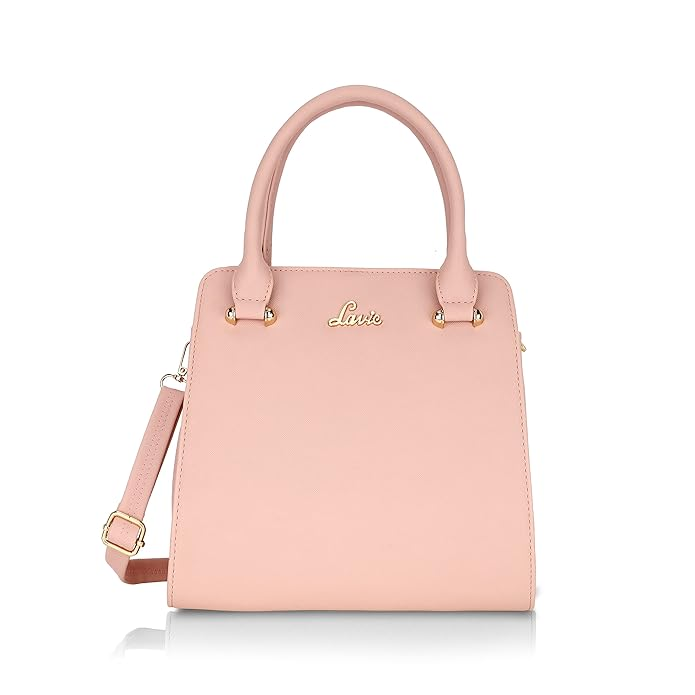 Looking for a dressy or formal pink handbag? Here is a light pink satchel for women from Lavie. Made from faux leather material, it has a premium saffiano texture, which gives a high-quality finish. The dual-cushioned top handles have gold-toned hardwares, which ensure durability, and look luxurious. It also comes with an adjustable and detachable crossbody strap, making it one of the best branded pink handbags that offer users’ convenience to carry around. It has two large and spacious main compartments and a centre divider zip pocket, to keep everything, from notebook, cash, to makeup, and keys. The provided top fastening zip provides safety of items.