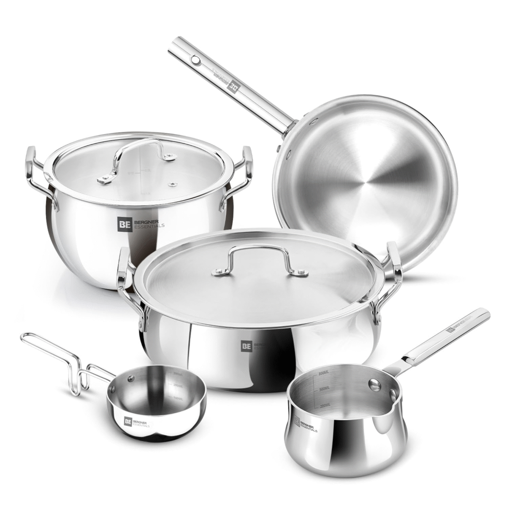 Bergner offers European quality and precision for Indian kitchens. Known for its tri-ply stainless steel range, Bergner cookware heats up quickly and evenly. The brand is particularly loved for its stylish yet sturdy designs, making it a great option for versatile cooking.
